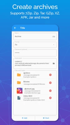 ✔ Supports all common archive formats and types (zip, rar, 7zip, 7z, jar, apk, tar, gzip)