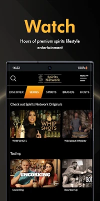 Spirits Network: The world's first shoppable* streaming entertainment channel. The only place to watch shows dedicated to premium spirits from across the globe complete with doorstep delivery* in one click from any device at any time*. Our programming library is updated weekly, featuring the world's greatest experts, celebrities, and distillers, with additional member perks like hand picked spirits selections, VIP events, on-demand shopping*, curated gift boxes, loyalty rewards, and much more. Sign up now to start exploring.